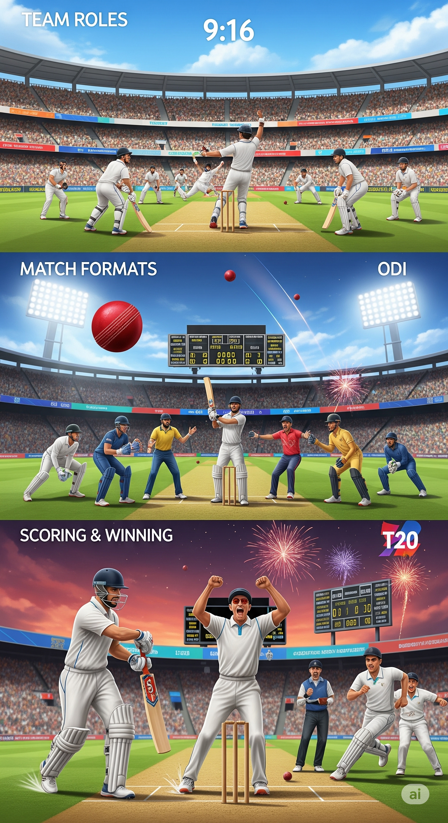 The batting team scores runs by hitting the ball and running between the wickets or by hitting boundaries. The bowling team aims to restrict runs and dismiss batters. The team that scores the most runs within the allowed overs or innings wins the match, making strategy, skill, and timing essential for success.